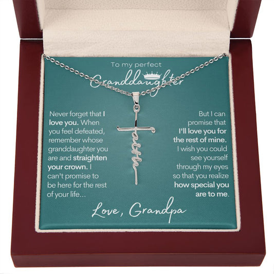 To My Granddaughter (Love Grandpa) - Beautiful Stainless Steel and Gold Faith Cross Necklace