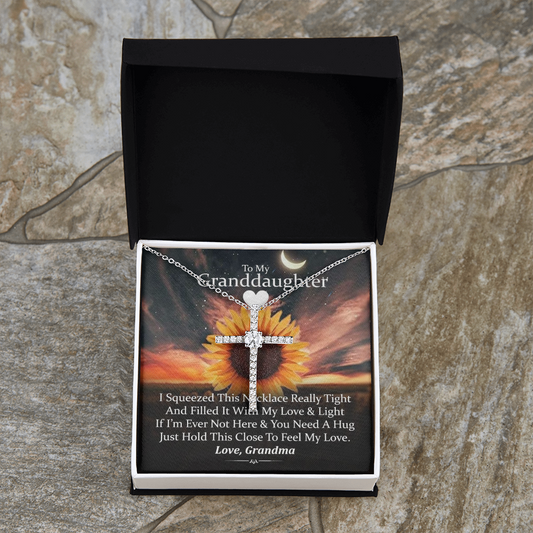 To My Granddaughter - Squeezed This Tight (Sunset) - Grace White Gold Cross Necklace