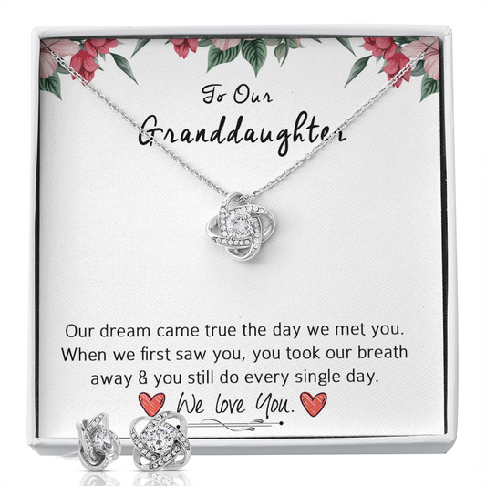 To My Granddaughter, Dreams | 14k White Gold Love Knot | Granddaughter Necklace Gift & Poem Card