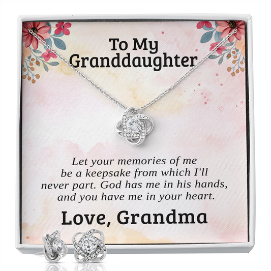 To My Granddaughter, From Grandma — Keep Me In Your Heart | 14k White Gold Necklace and Earring Set
