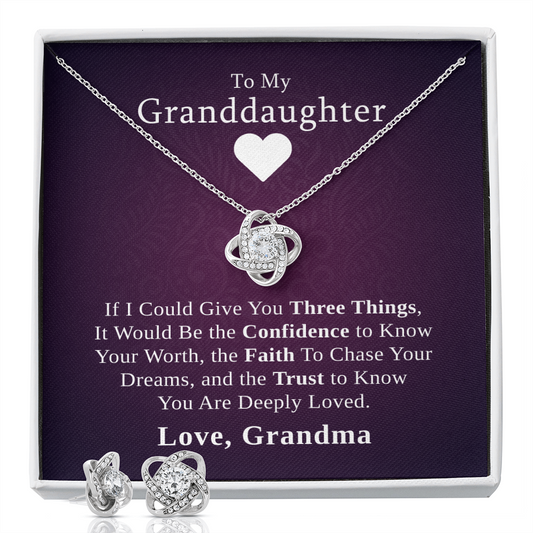 To My Granddaughter, Three Things I'd Give You | 14k White Gold Necklace and Earring Set