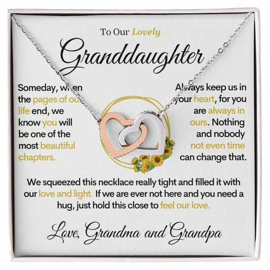 To Our Lovely Granddaughter - Sunflower Pages of Life, Two Hearts Necklace (From Grandma and Grandpa)