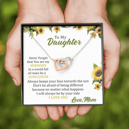 To My Daughter - You Are My Sunshine (Love, Mom) | Beautiful 14k Gold Forever Family Locked Hearts