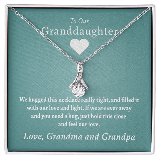 To Our Granddaughter - Feel Our Love ( Grandma and Grandpa) | Stainless Steel and Gold Ribbon Necklace