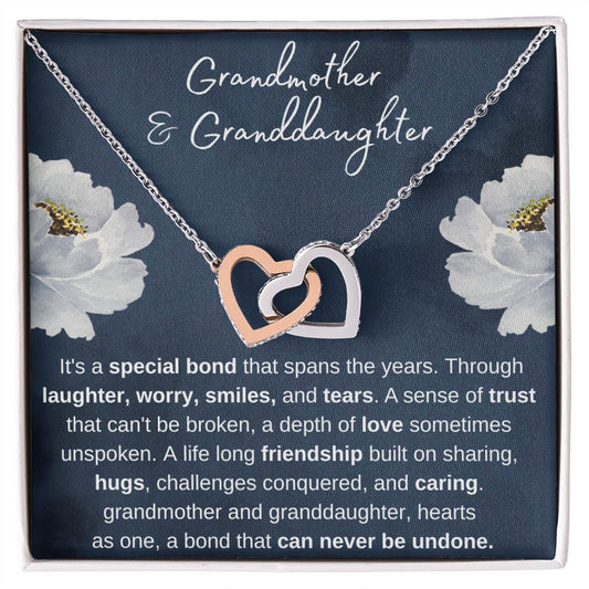 Grandmother & Granddaughter, Hearts as One - Interlocked Gold Hearts Necklace for Grand Daughter