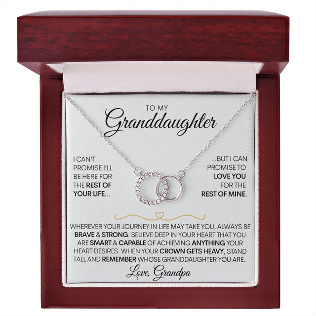 Some things are just better together, like Grandpas and Granddaughters. The Family Circle Necklace is designed to be given as a gift to granddaughters from grandfathers. It’s a beautiful representation of togetherness and would make a memorable gift for your granddaughters in your life. This elegant piece is dipped in white gold and features 20 dazzling cubic zirconia crystals. With its brilliant shine and timeless style, this necklace makes the ideal present for any occasion.