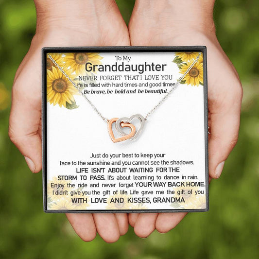 To My Grand Daughter - Be Brave, Be Bold And Be Beautiful (Love, Grandma) | Beautiful 14k Gold Forever Family Locked Hearts