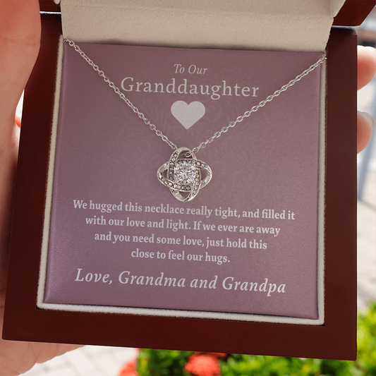 Granddaughter - Two Hugs (Grandma & Grandpa) | Beautiful 14k White Gold Granddaughter Knot Necklace