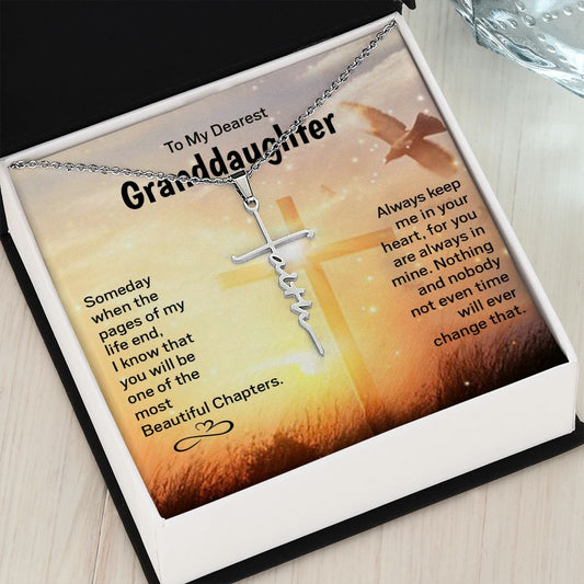 To My Dearest Granddaughter - Faith Cross Necklace | Stainless Steel and 14k White Gold
