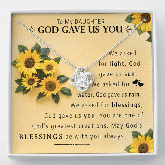 To My DAUGHTER - God Gave Us You | Artisan Crafted 14k Gold Knot Family Necklace
