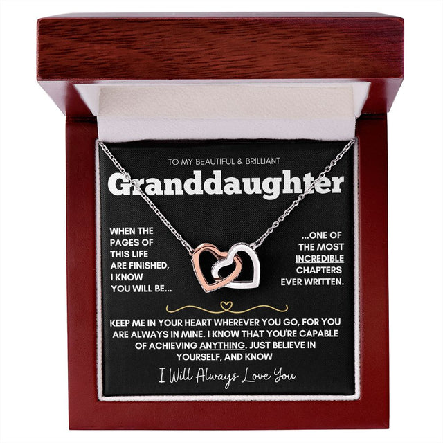 Granddaughter - Beautiful Rose Gold and Stainless Steel Connected Hearts Necklace