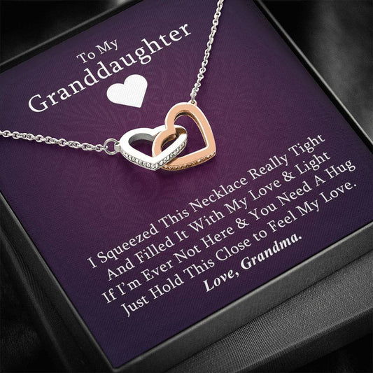 To My Grand Daughter - Here Together Or Miles Apart (Love, Grandma) | Beautiful 14k Gold Forever Family Locked Hearts