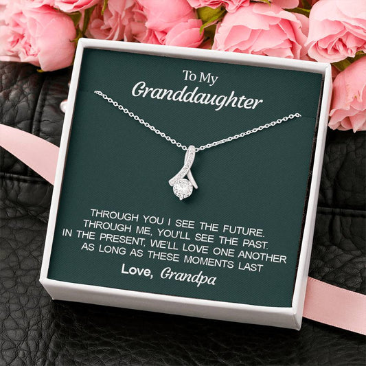To My Grand Daughter - As Long As These Moments Last (Love Grandpa) | Beautiful 14K White Gold Family Forever Pendant