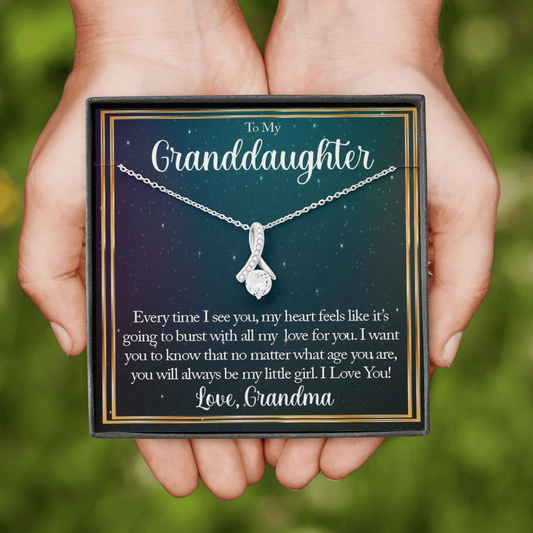 To My Grand Daughter - Always Be My Little Girl (Love, Grandma) | Beautiful 14K White Gold Family Forever Pendant