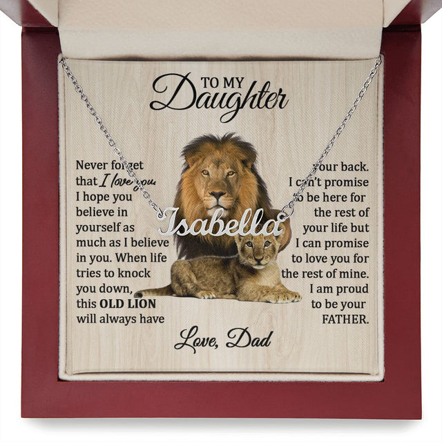 Daughter - never forget that I love you! I hope you believe in yourself as much as I believe in you. When life tries to knock you down, this old lion will always have your back. I can't promise to be here for the rest of your life, but I can promise to love you for the rest of mine. Love, Dad.
