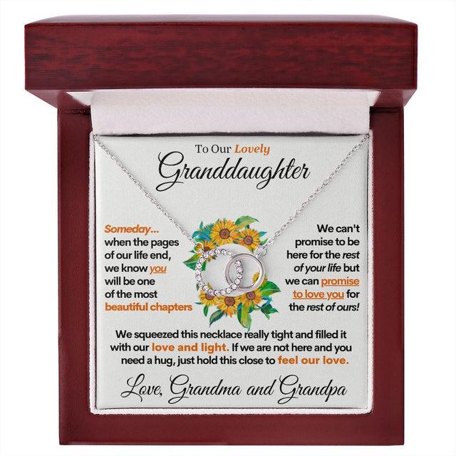 Someday...when the pages of our life end, we know you will be one of the most beautiful chapters. We can't promise to be here for the rest of your life but we promise to love you for the rest of ours! We squeezed this necklace really tight and filled it with our love and light. If we are not here and you need a hug, just hold this close to feel our love. Love, Grandma and Grandpa.